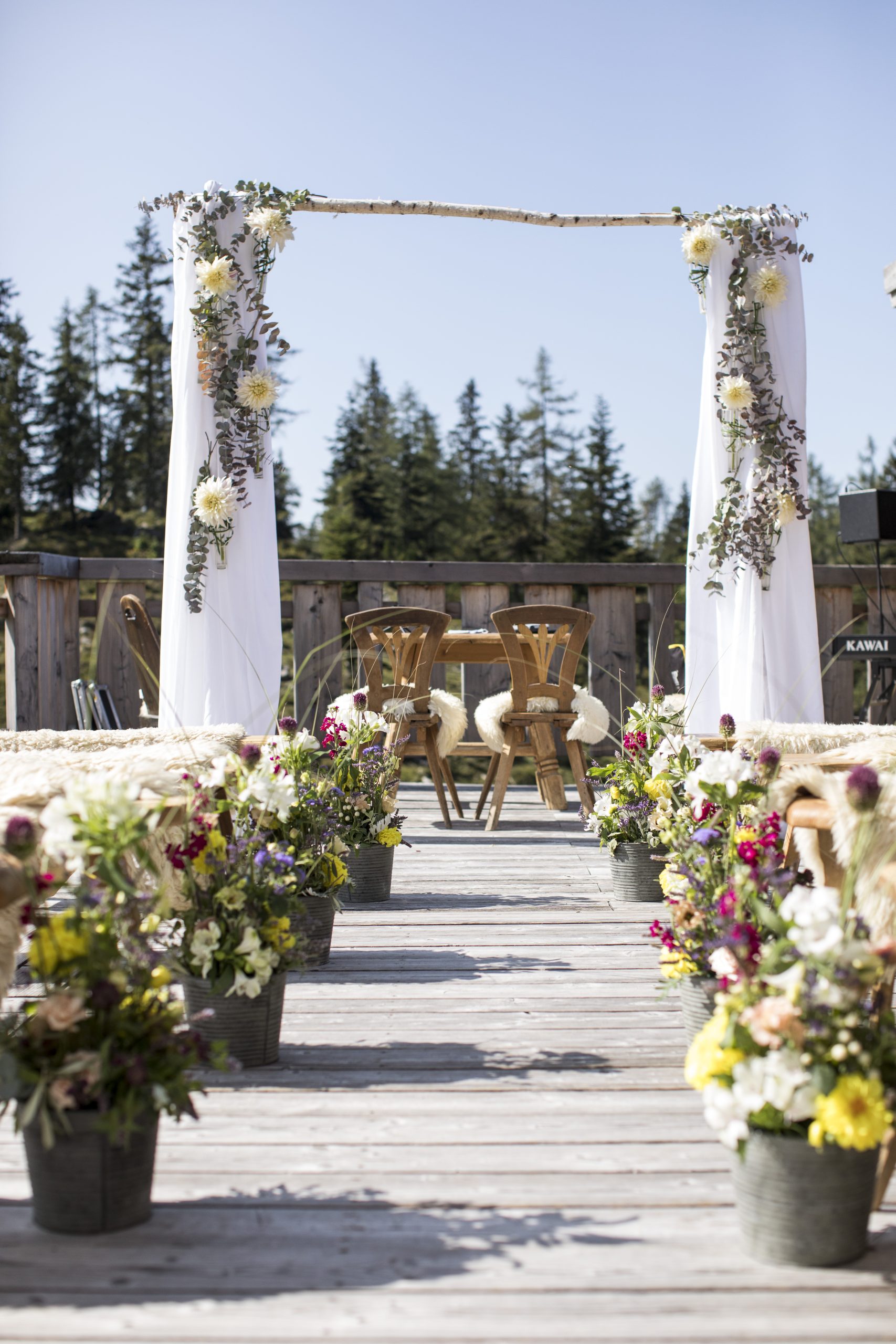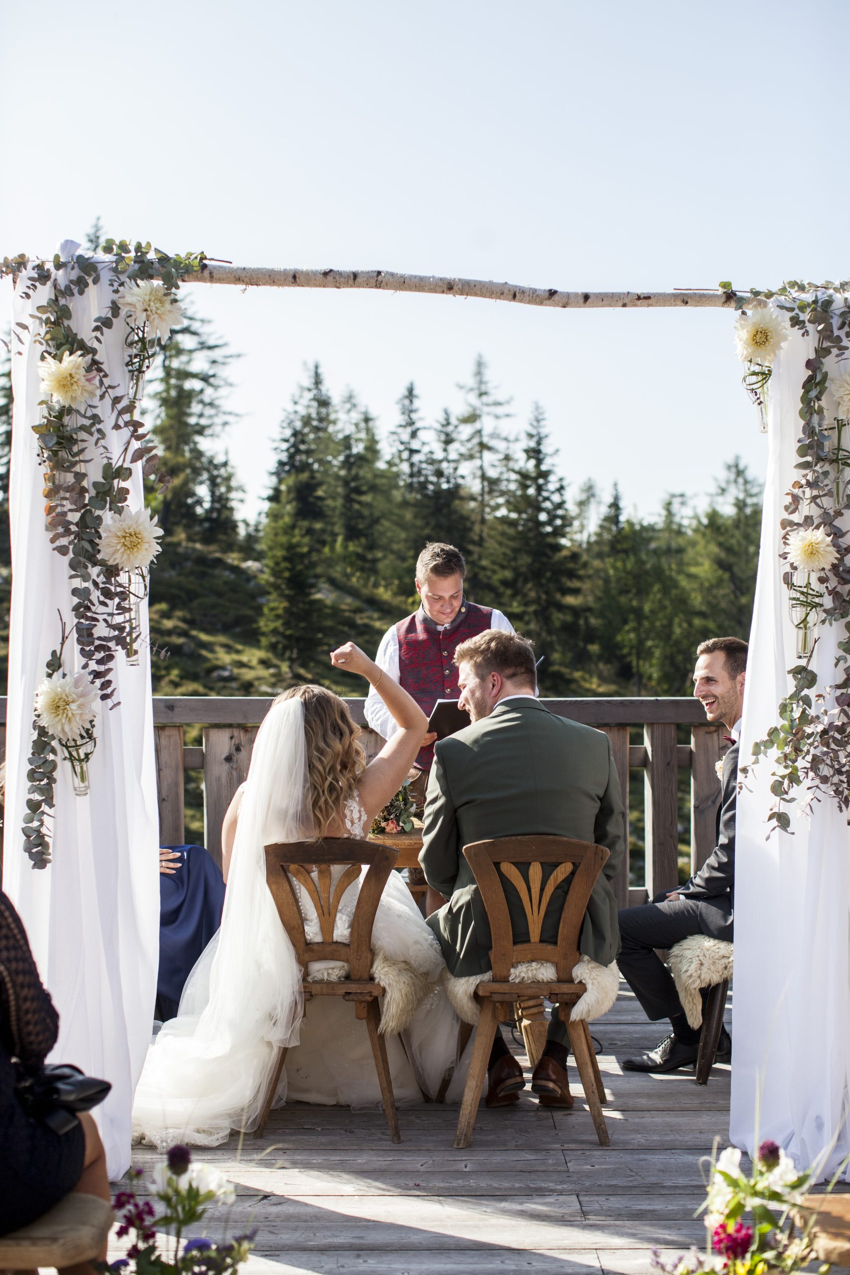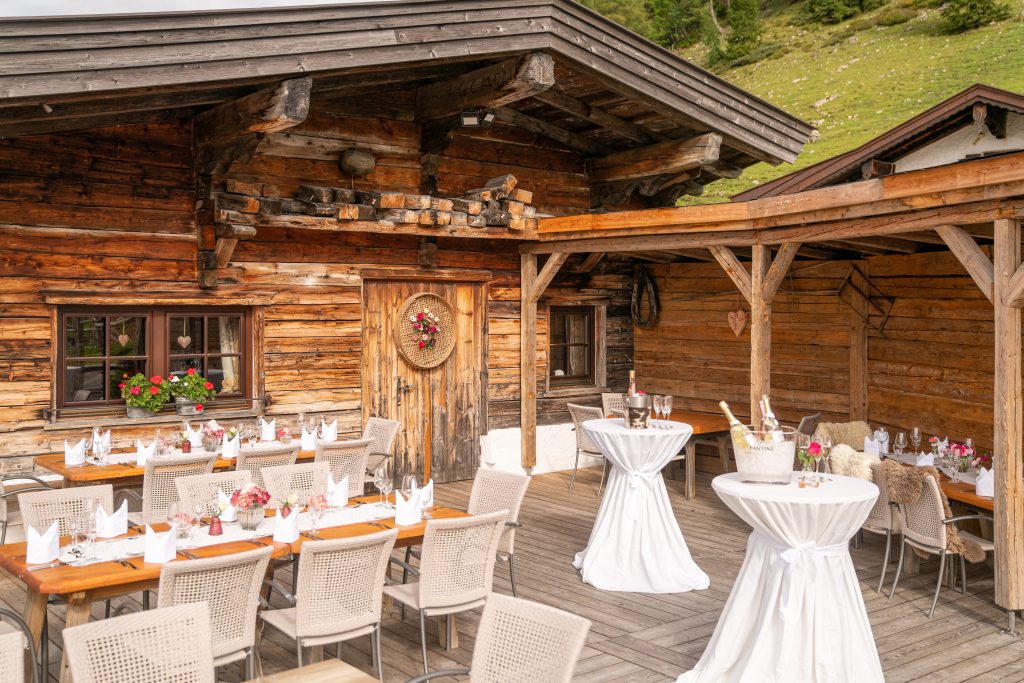 Auf 1.400 Metern Seehöhe, umrahmt von sanften Almböden und den schroffen Felsen der Tiroler Bergwelt, liegt Ihnen eine atemberaubende Kulisse zu Füßen. Gibt es einen idyllischeren Ort als diesen, um den Bund fürs Leben zu schließen?
